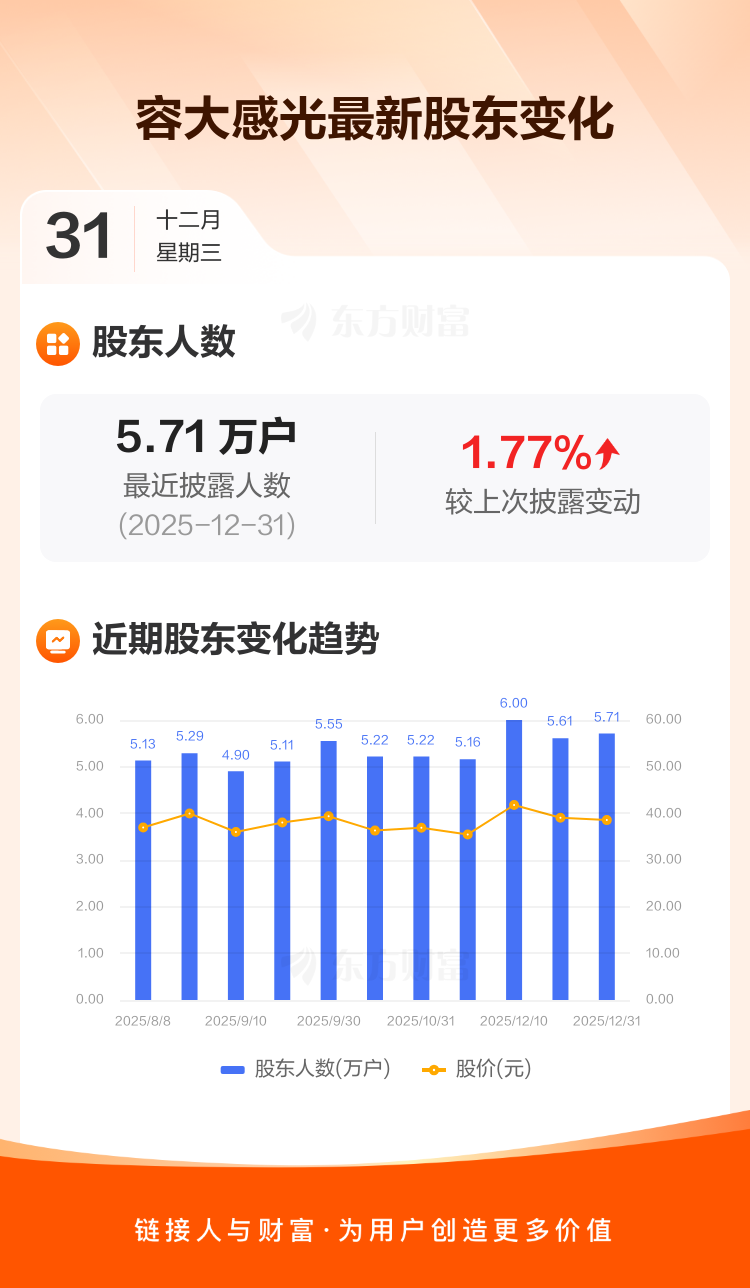 容大感光:截至12月31日最新股东户数5.71万户,较上期增加1.77%