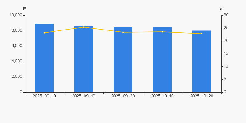 自2025年9月10日以来,公司股东户数连续4期下降,截至目前减幅为9.92%。2025年9月10日至2025年10月20日区间股价下降1.53%。
