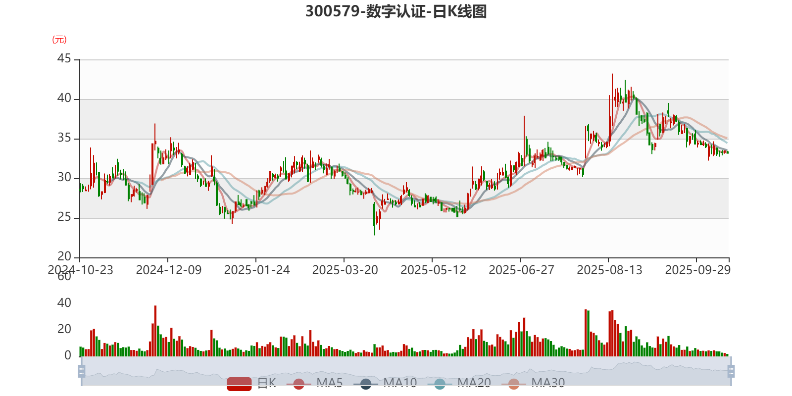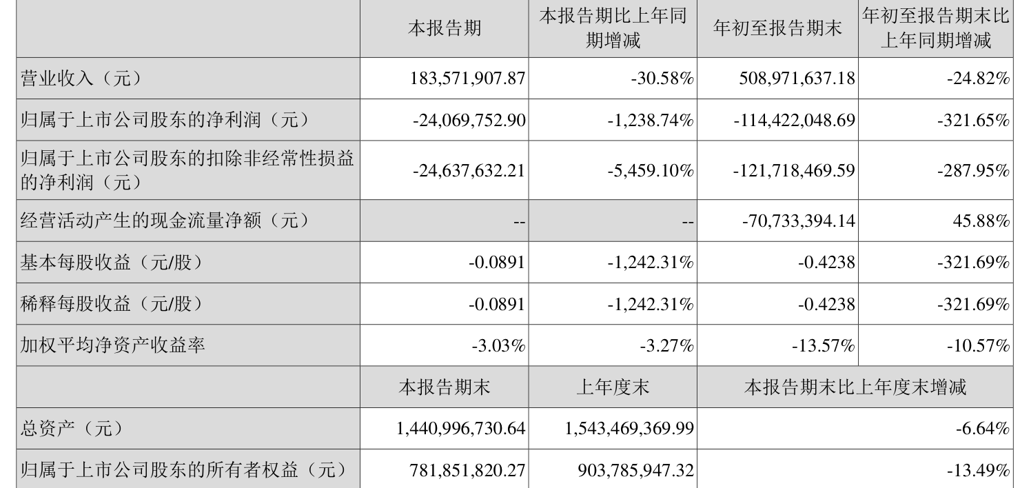 中证智能财讯数字认证(300579)10月23日披露2025年第三季度报告。前三季度公司实现营业总收入5.09亿元,同比下降24.82%;归母净利润亏损1.14亿元,上年同期亏损2713.69万元;扣非净利润亏损1.22亿元,上年同期亏损3137.48万元;经营活动产生的现金流量净额为-7073.34万元,上年同期为-1.31亿元;报告期内,数字认证基本每股收益为-0.4238元,加权平均净资产收益率为-13.57%。