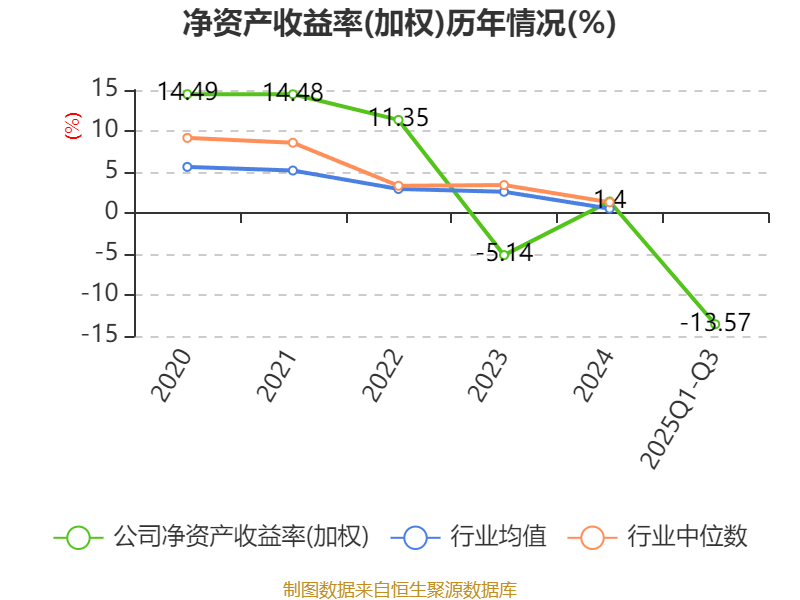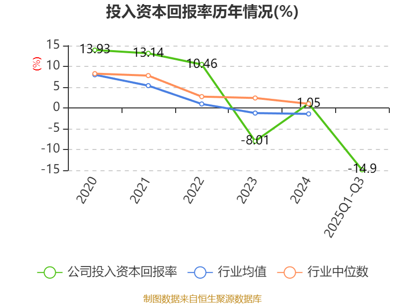 盈利能力方面, 2025年前三季度公司加权平均净资产收益率为-13.57%,同比下降10.57个百分点。公司2025年前三季度投入资本回报率为-14.9%,较上年同期下降11.5个百分点。