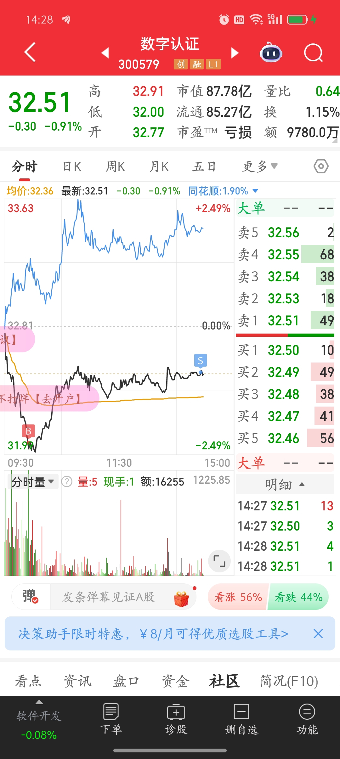 $数字认证(SZ300579)$ 够今晚买大馒头吃我走了,大家发财