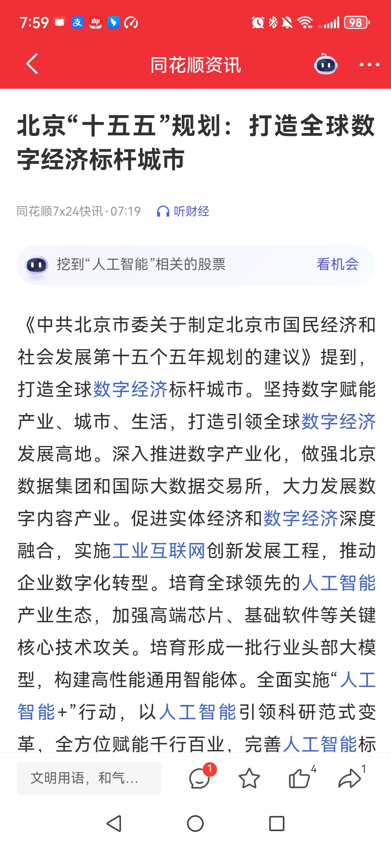 深入推进数字产业化。做强北京数据集团和国际大数据交易所!今天涨停!