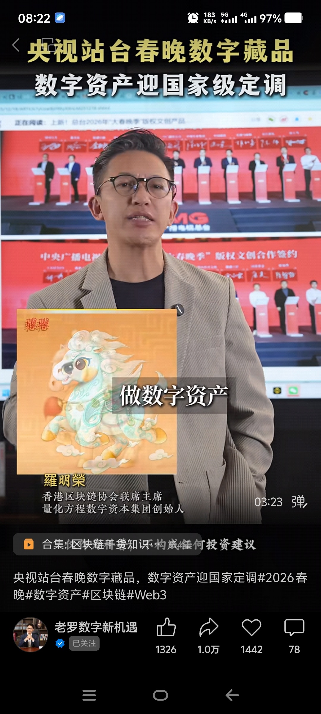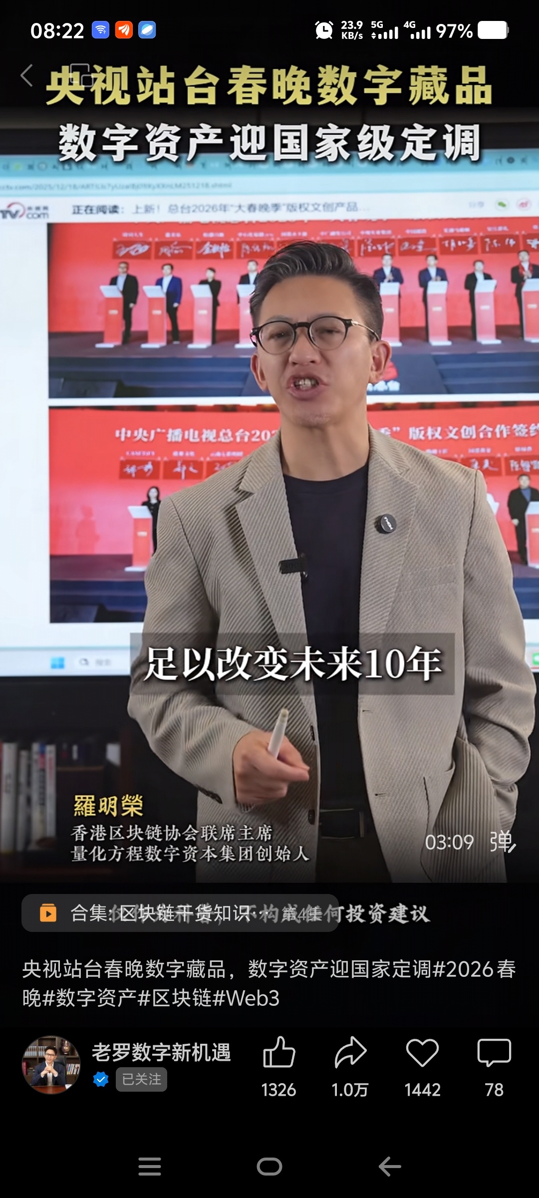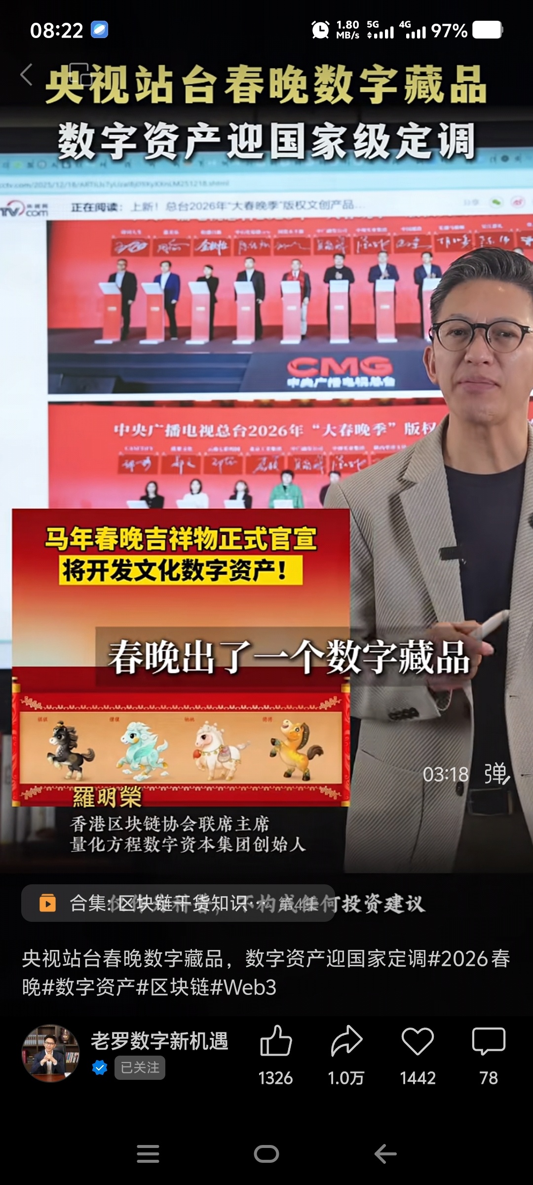 央视站台春晚数字藏品,数字资产迎国家定调#2026春晚#数字资产#区块链#Web3