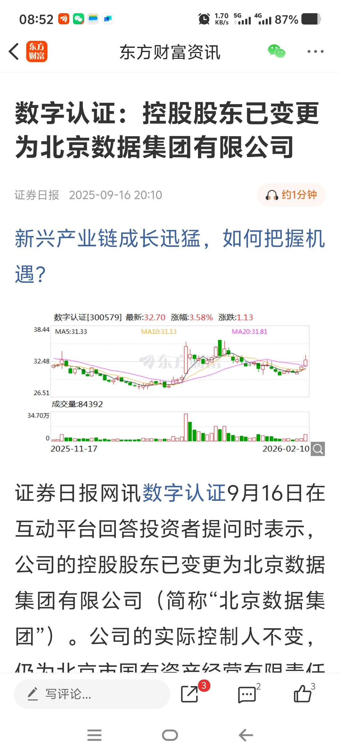 $数字认证(SZ300579)$ $浙文互联(SH600986)$ $浙数文化(SH600633)$ 春晚数字藏品,数字认证最受益。而且与北京数据集团资产重组迫在眉睫,或即将停盘重组的可能性很大!