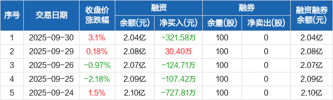晨曦航空:融资净偿还321.58万元,融资余额2.04亿元(09-30)