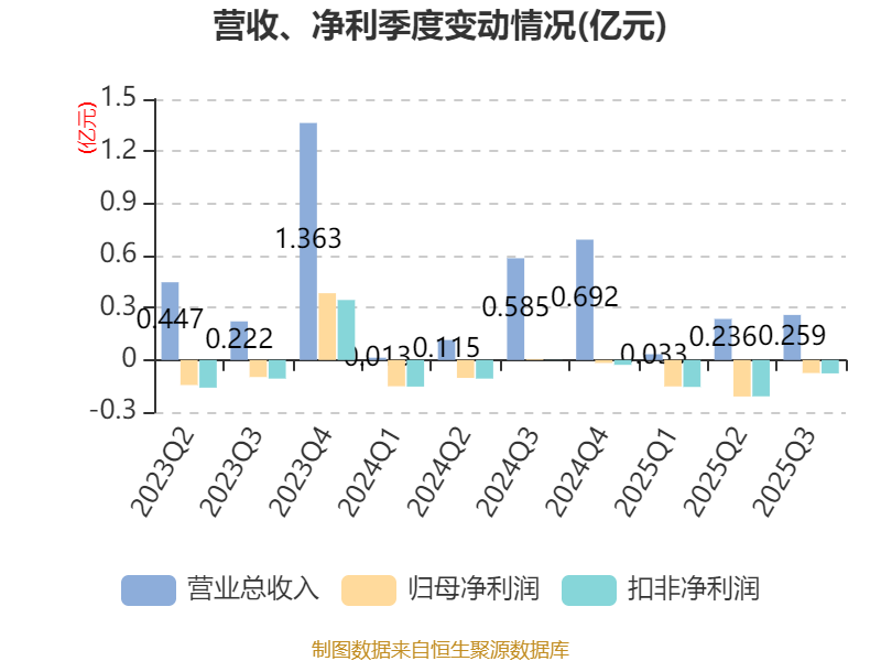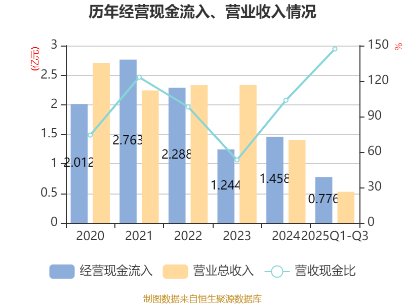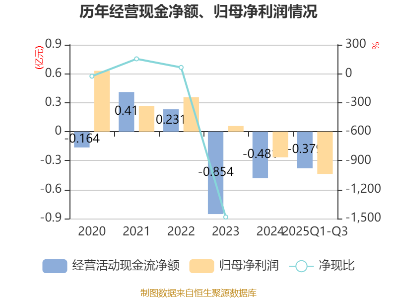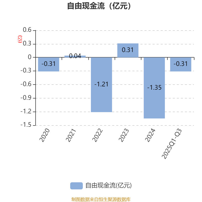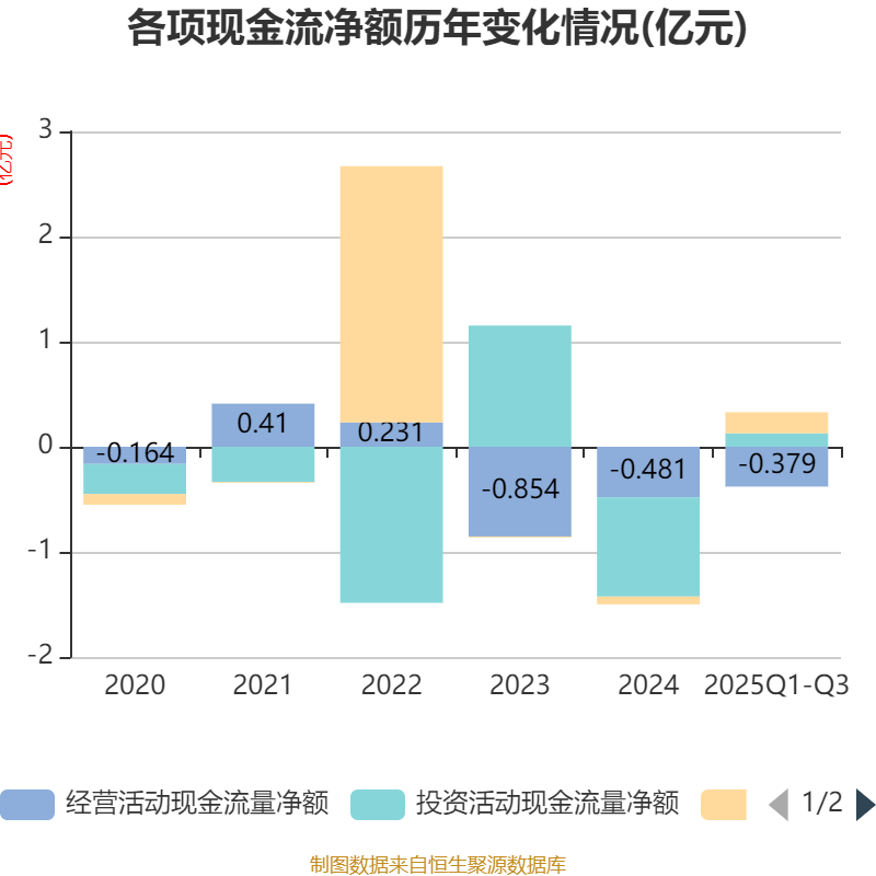 2025年前三季度,公司经营活动现金流净额为-3787.76万元,同比增加1931.26万元;筹资活动现金流净额1995.93万元,同比增加2736.76万元;投资活动现金流净额1276.34万元,上年同期为-9255.25万元。