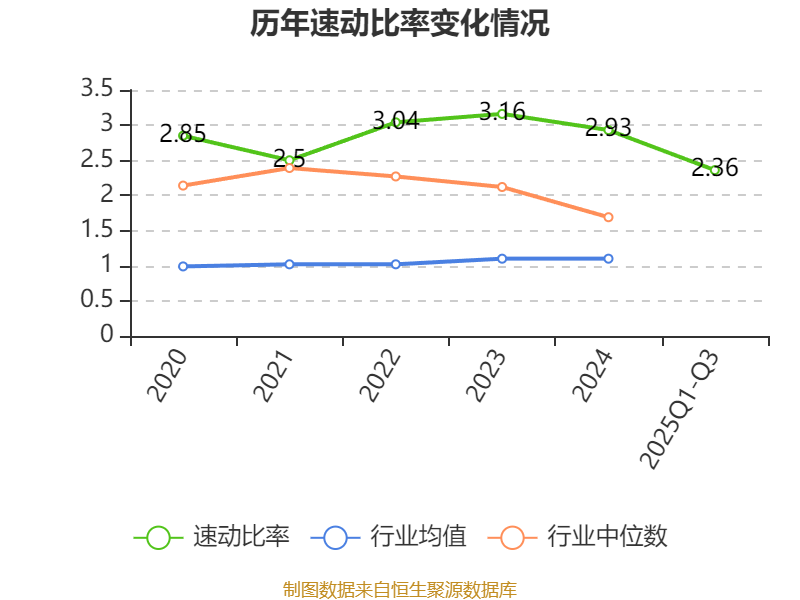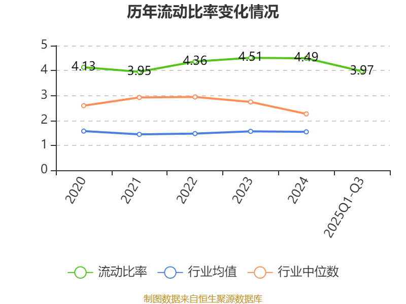 2025年前三季度,公司流动比率为3.97,速动比率为2.36。