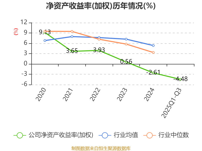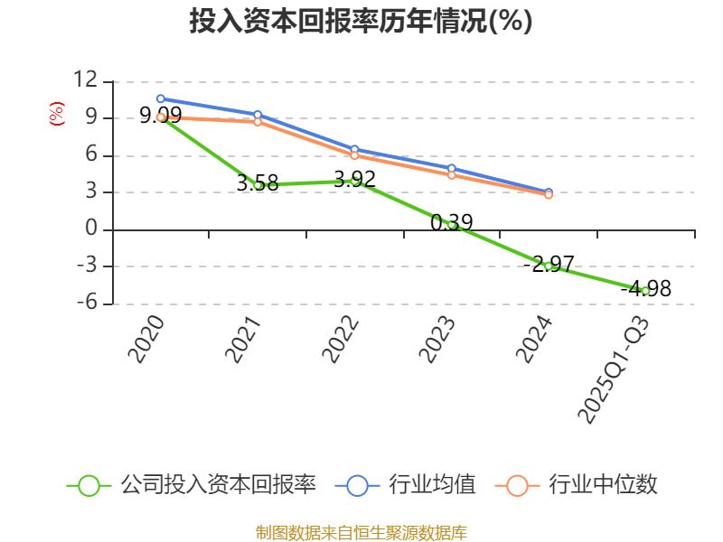 盈利能力方面, 2025年前三季度公司加权平均净资产收益率为-4.48%,同比下降2.04个百分点。公司2025年前三季度投入资本回报率为-4.98%,较上年同期下降2.14个百分点。