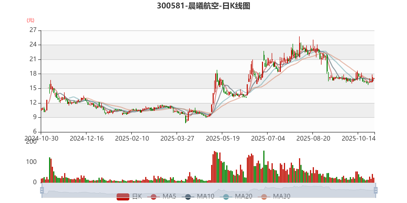 以10月29日收盘价计算,晨曦航空目前市盈率(TTM)约为-206.77倍,市净率(LF)约9.85倍,市销率(TTM)约77.21倍。