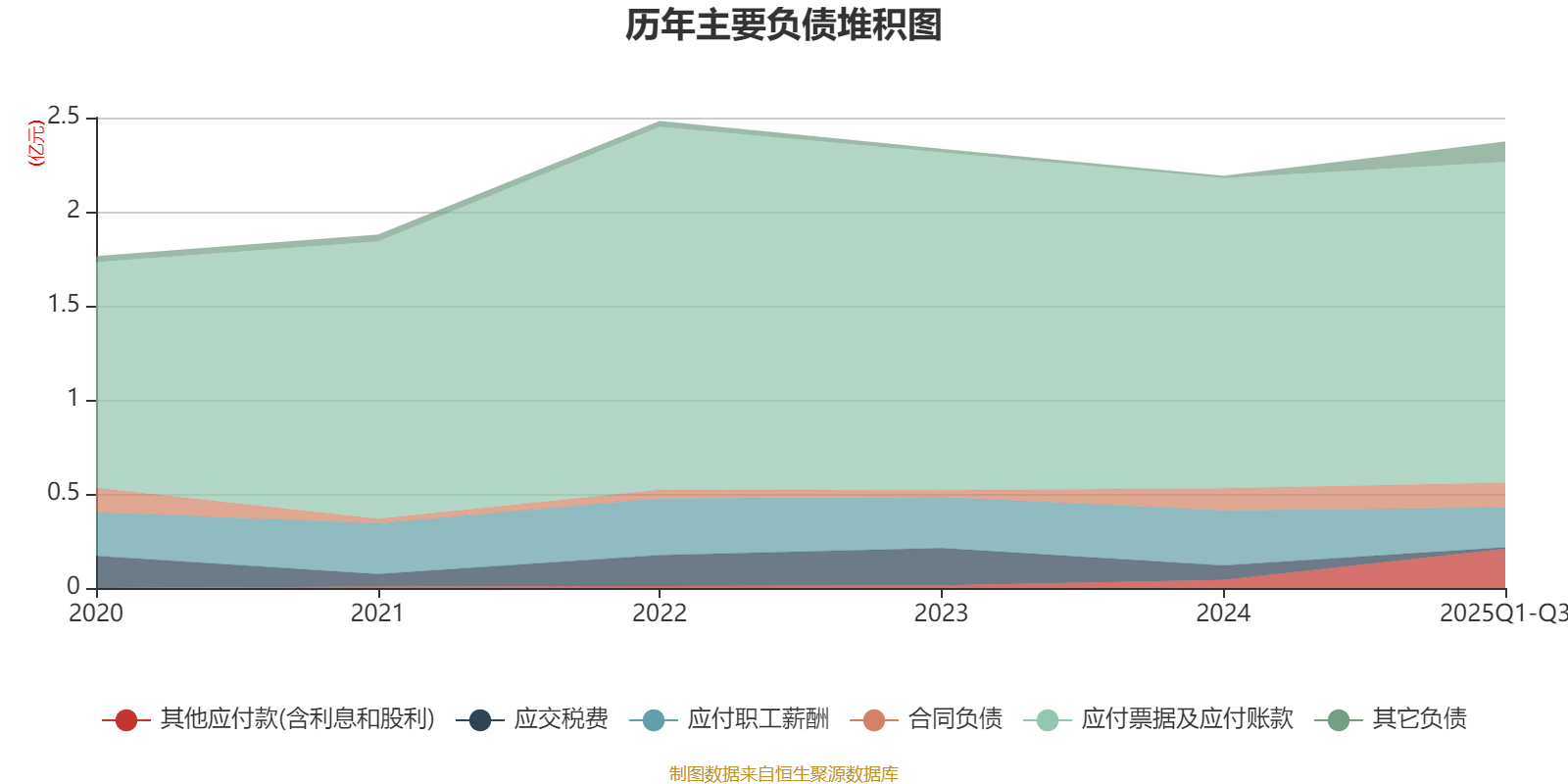 负债重大变化方面,截至2025年三季度末,公司其他应付款(含利息和股利)较上年末增加383.91%,占公司总资产比重上升1.39个百分点;短期借款占公司总资产的0.84%,上年末为0;应付票据及应付账款较上年末增加3.31%,占公司总资产比重上升0.75个百分点;应付职工薪酬较上年末减少27.61%,占公司总资产比重下降0.63个百分点。