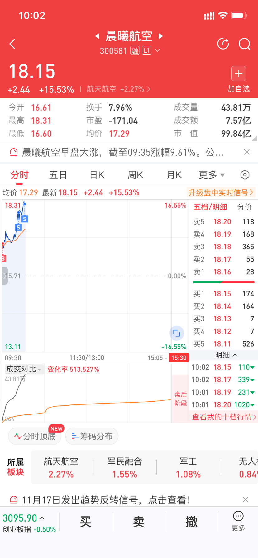 $晨曦航空(SZ300581)$ 开盘入,t了两笔,看戏