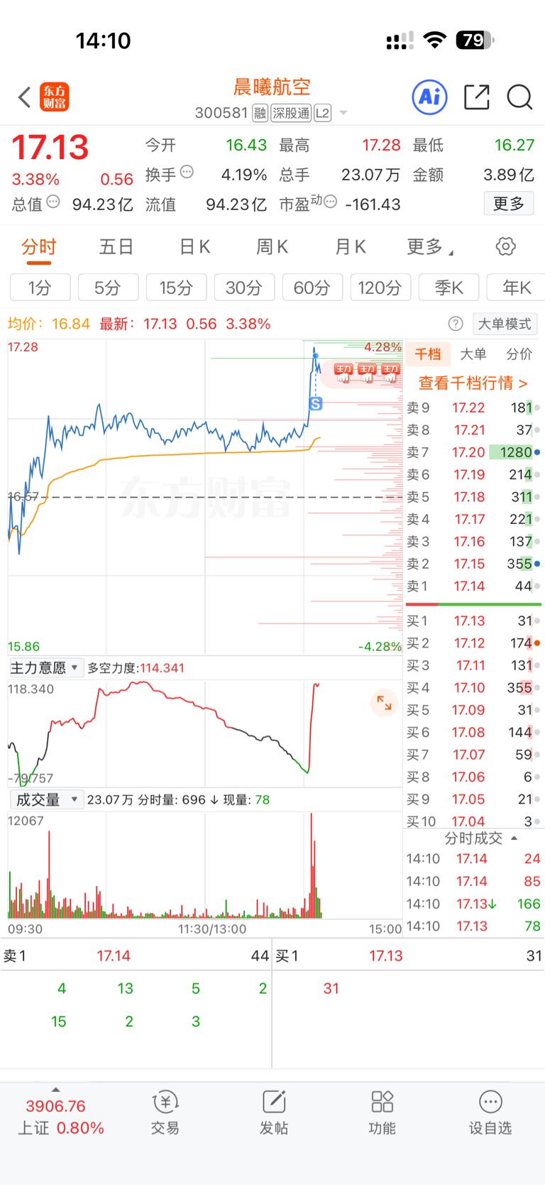 $晨曦航空(SZ300581)$ 对不起今天我是空头