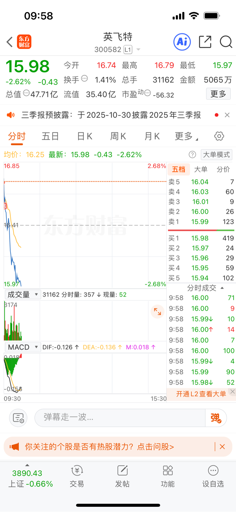 $英飞特(SZ300582)$ 买入就吃面,今天保守估计吃8个点的面,明天开盘再吃2个点割肉离场
