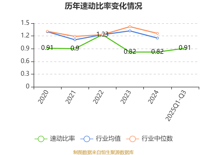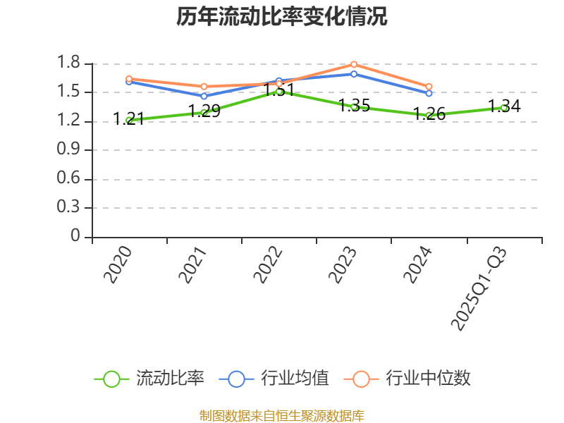 2025年前三季度,公司流动比率为1.34,速动比率为0.91。