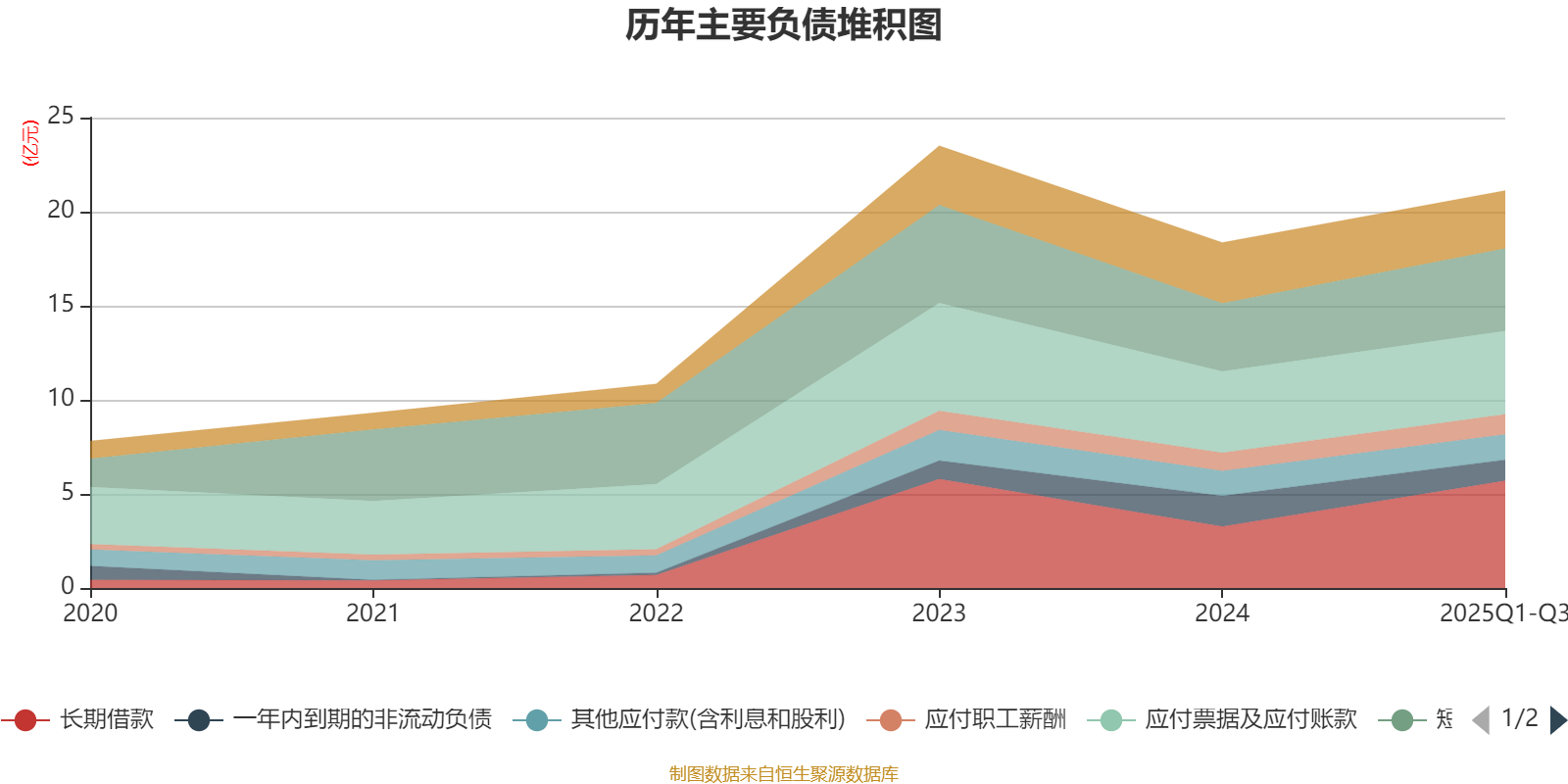 负债重大变化方面,截至2025年三季度末,公司长期借款较上年末增加74.67%,占公司总资产比重上升6.71个百分点;短期借款较上年末增加21.22%,占公司总资产比重上升1.82个百分点;一年内到期的非流动负债较上年末减少31.8%,占公司总资产比重下降1.7个百分点;其他流动负债较上年末减少17.59%,占公司总资产比重下降0.53个百分点。