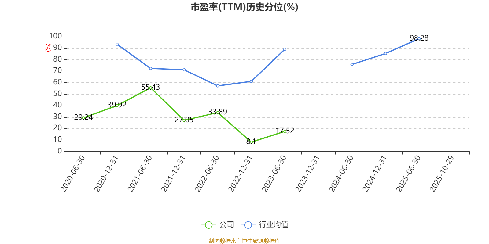 市盈率、市净率为负时,不显示当期分位数,会导致折线图中断。