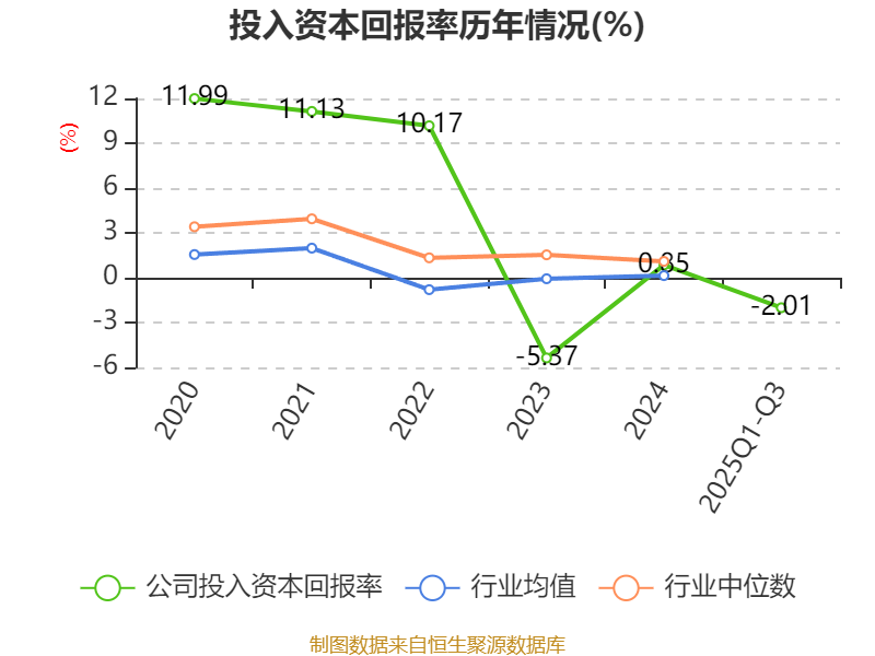盈利能力方面, 2025年前三季度公司加权平均净资产收益率为-5.64%,同比下降8.75个百分点。公司2025年前三季度投入资本回报率为-2.01%,较上年同期下降4.9个百分点。