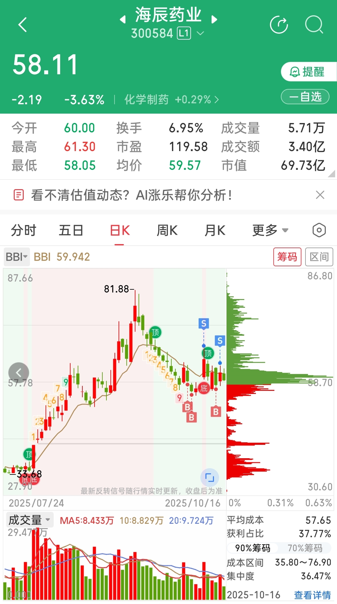 $海辰药业(SZ300584)$ 今天上午买的人多吗?