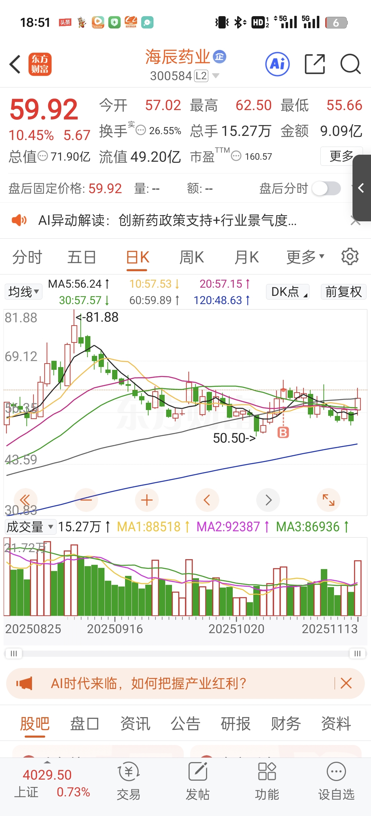 $海辰药业(SZ300584)$ 兄弟坚定持有,别挣点就跑,格局大点