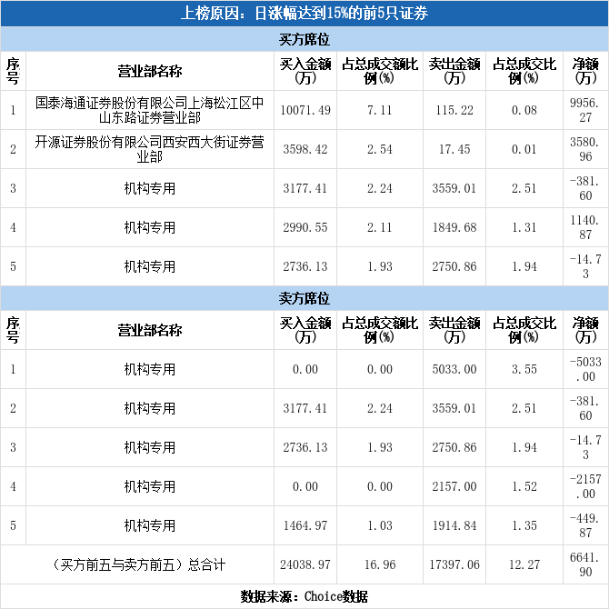 多主力现身龙虎榜,海辰药业涨停(11-14)