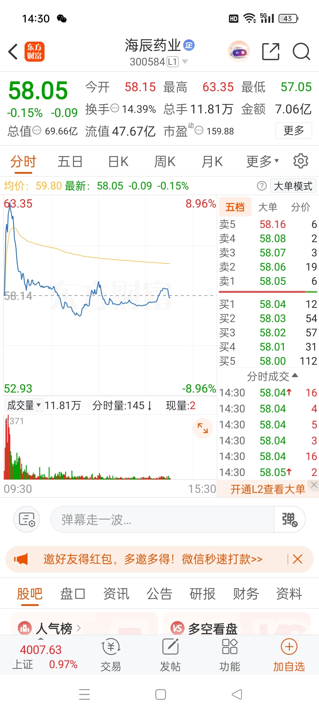 $海辰药业(SZ300584)$ 好嗨哦……感觉人生已经达到了巅峰