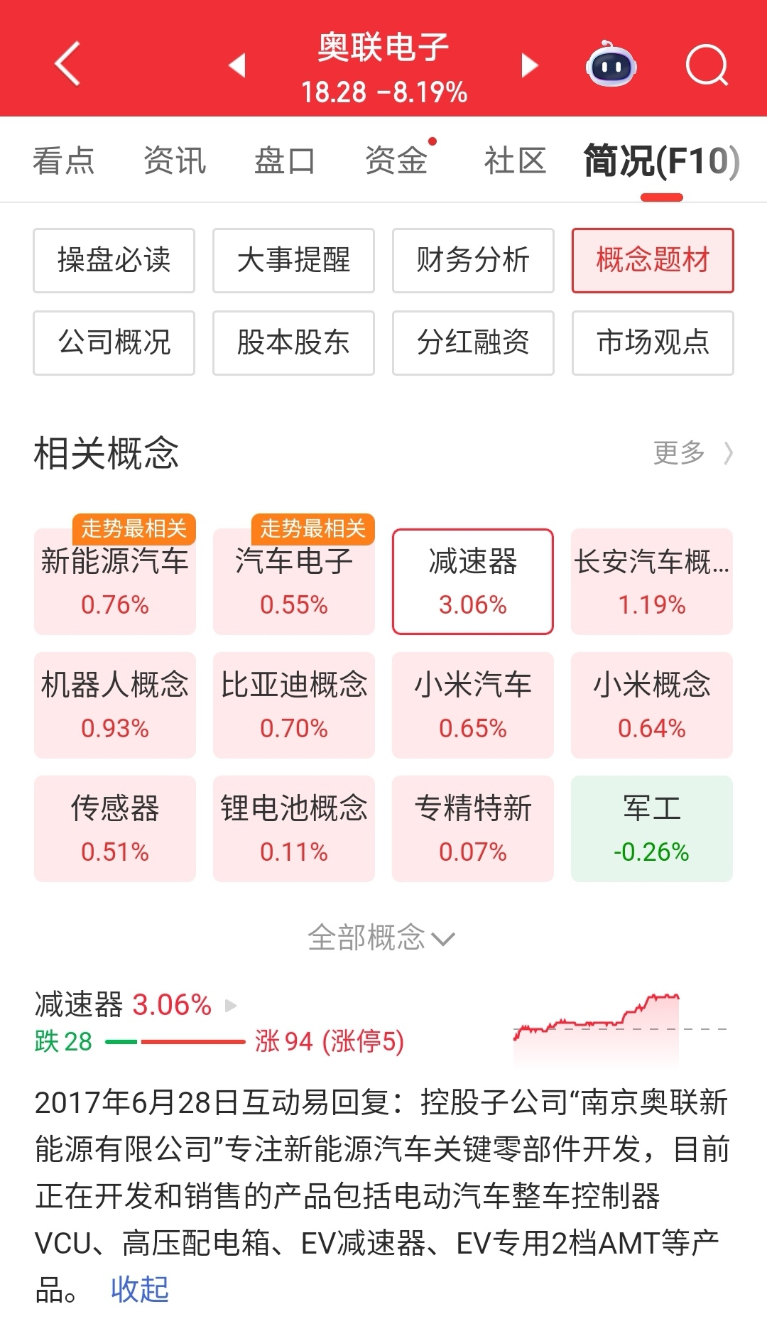 减速器概念暴涨,奥联电子减速器概念其他所有证券软件全部都有!