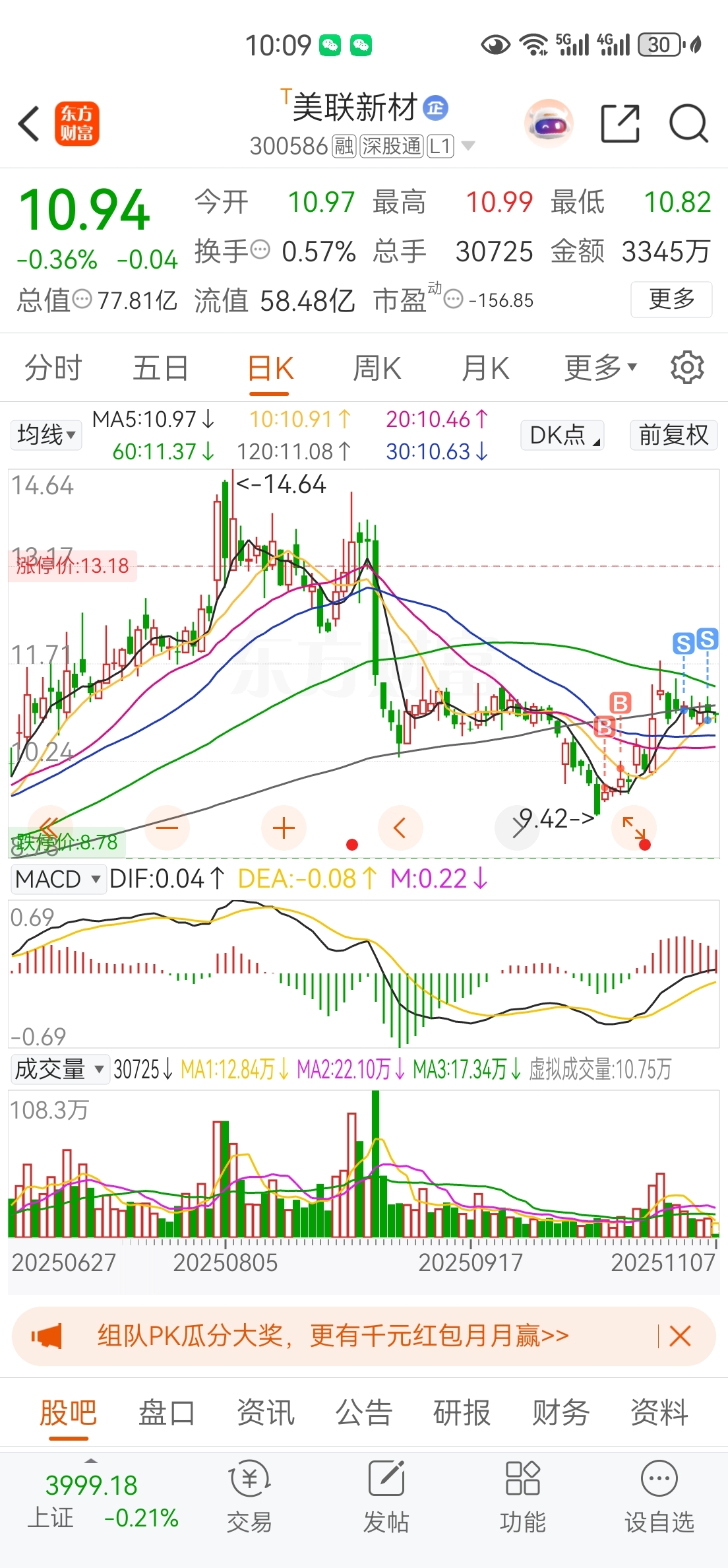 $美联新材(SZ300586)$ 卖完了,请开始你的表演