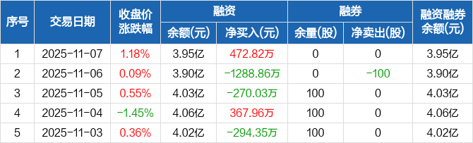 美联新材:融资净买入472.82万元,融资余额3.95亿元(11-07)