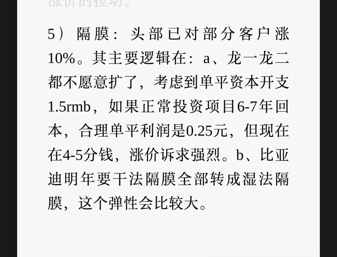湿法隔膜涨价!涨价!明天能不能涨5个点
