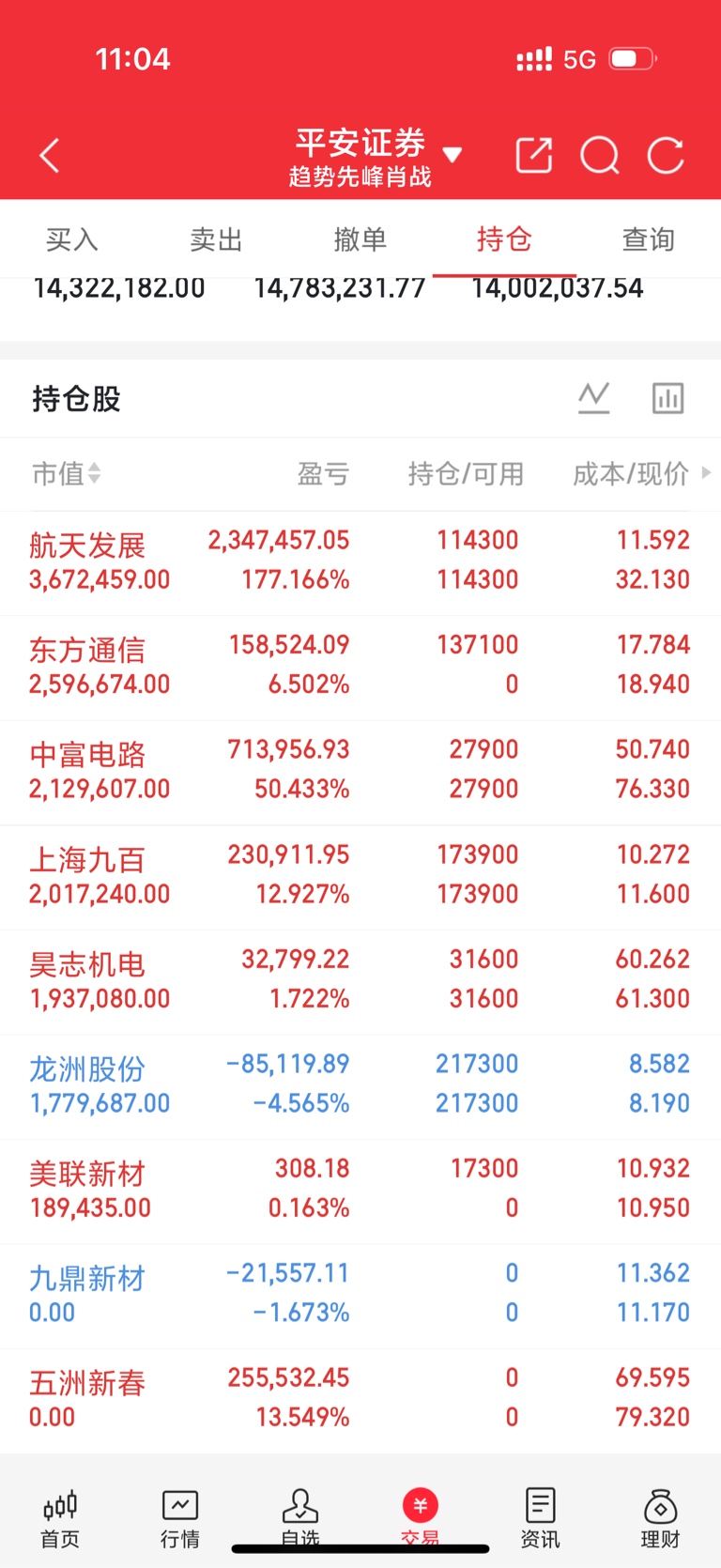 今日选择获利出局五洲新春和九鼎新材,预祝留下兄弟们好运发财