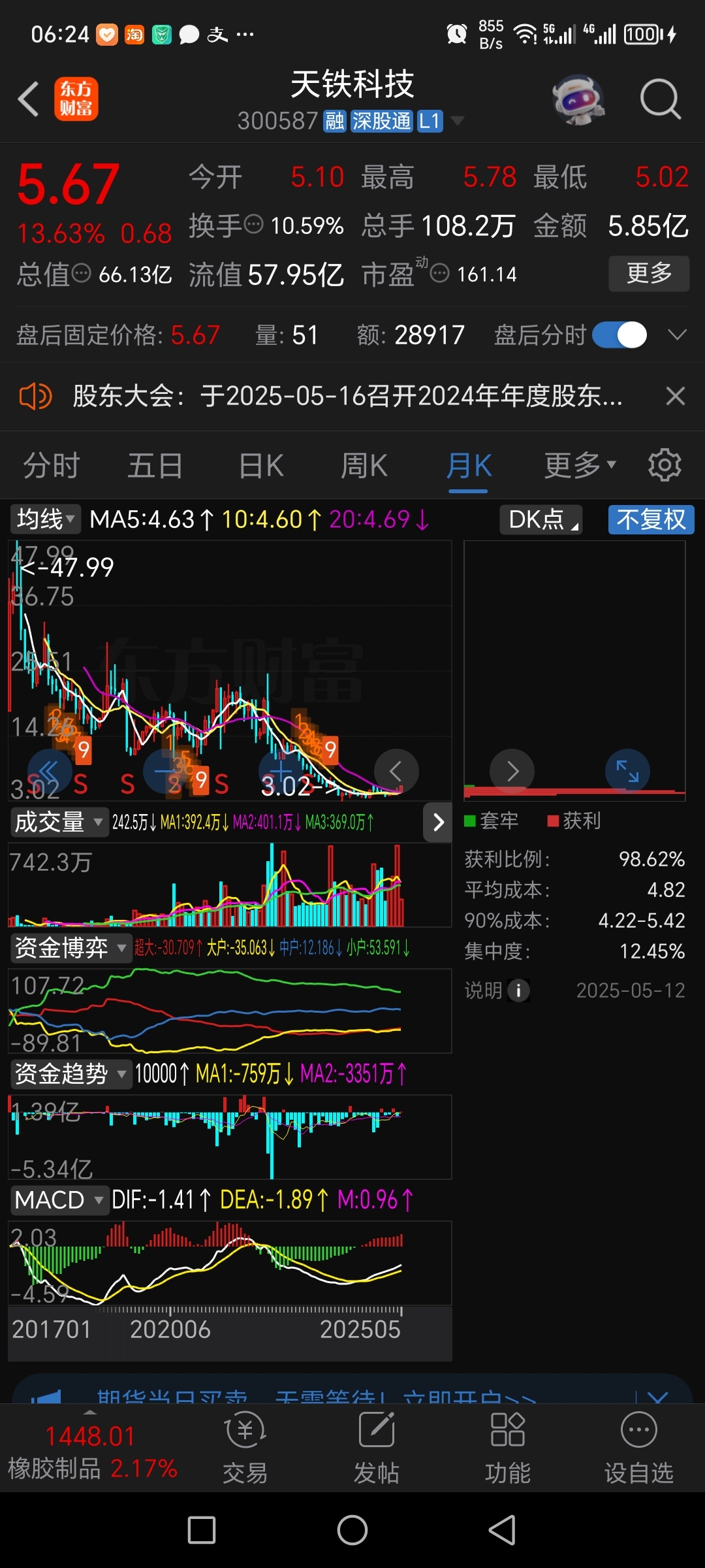 $天铁科技(SZ300587)$ 3.02你不敢买怕跌到2元,5.67你不愿卖你幻想涨到567元,5.67你嫌价格太高,涨到56.7元你抢破头往里面冲,一回调到5元吓得你赶紧清仓了,你来开户是干嘛的!!