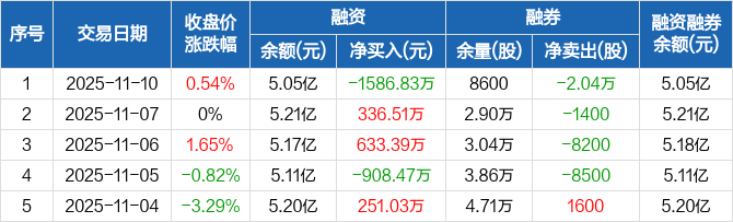 天铁科技:融资净偿还1586.83万元,融资余额5.05亿元(11-10)