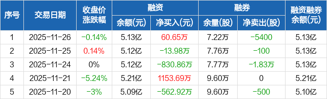 天铁科技:融资净买入60.65万元,融资余额5.13亿元(11-26)