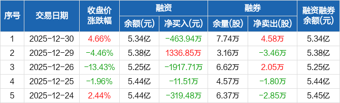 天铁科技:融资净偿还463.94万元,融资余额5.34亿元(12-30)