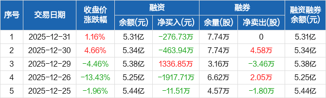 天铁科技:融资净偿还276.73万元,融资余额5.31亿元(12-31)