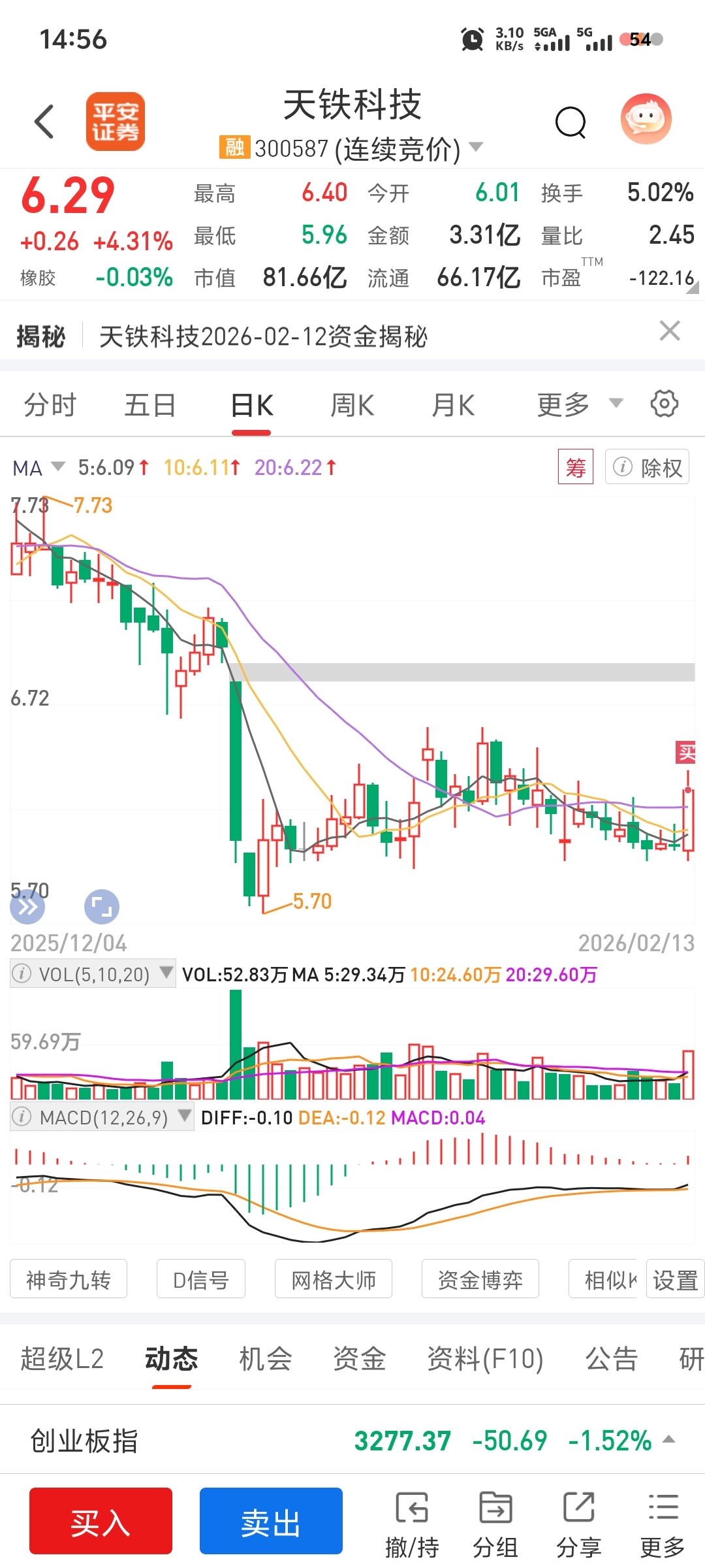 $天铁科技(SZ300587)$ 重仓股来了,尾盘重仓买入抢个反弹,止盈位6.83-7元区间(破位阴缺口),这个股就是见好就收的货,一旦情形不好跑得要快。
