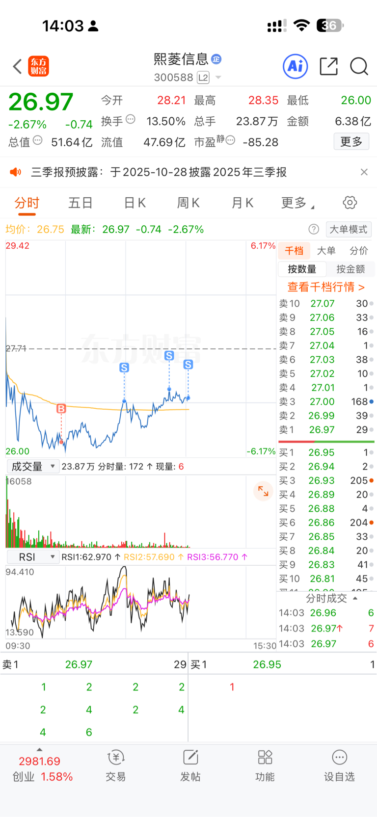 $熙菱信息(SZ300588)$ 留两手底仓,明天再看