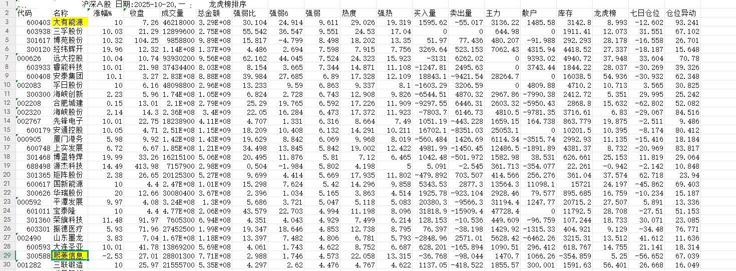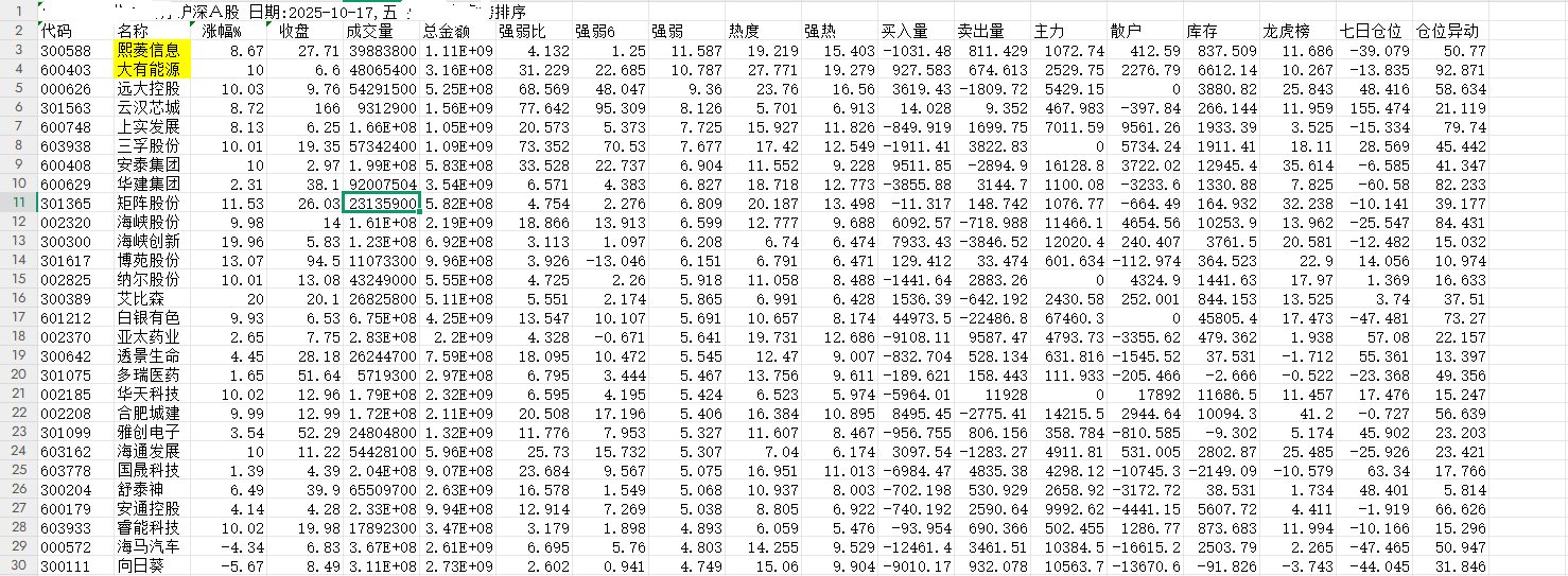 10月17号第一名强势股,今天离开十九强了,看明天能不能回到十九强