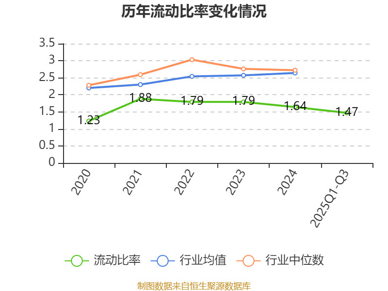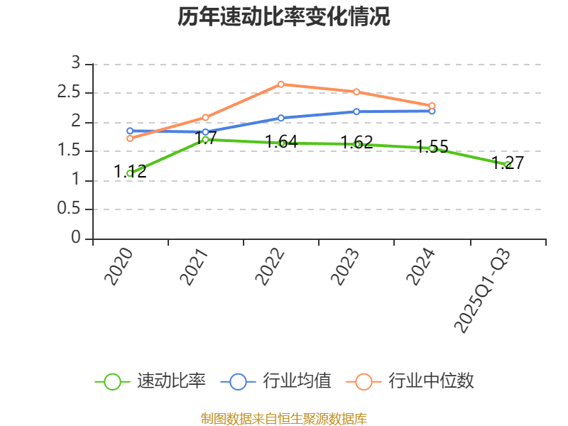 2025年前三季度,公司流动比率为1.47,速动比率为1.27。