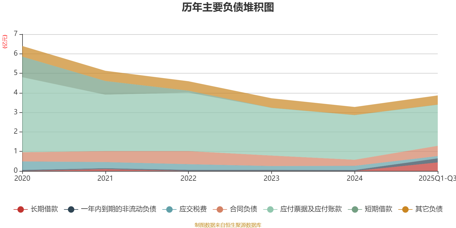 负债重大变化方面,截至2025年三季度末,公司长期借款占公司总资产的6.42%,上年末为0;应付票据及应付账款较上年末减少7.88%,占公司总资产比重下降4.53个百分点;合同负债较上年末增加68.68%,占公司总资产比重上升2.86个百分点;一年内到期的非流动负债较上年末增加343.52%,占公司总资产比重上升2.3个百分点。