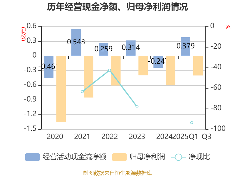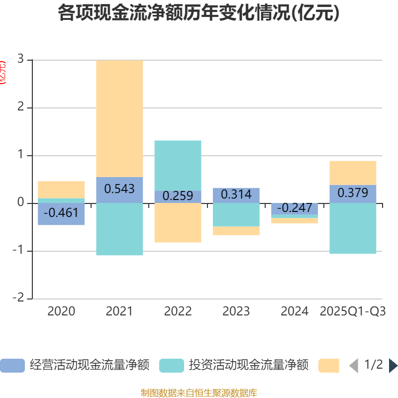 2025年前三季度,公司经营活动现金流净额为3785.86万元,同比增加8667.64万元;筹资活动现金流净额5003.9万元,同比增加6027.37万元;投资活动现金流净额-1.06亿元,上年同期为-142.42万元。