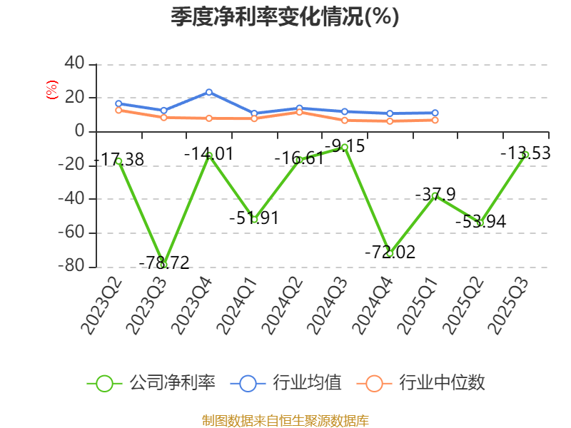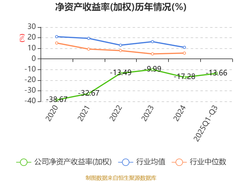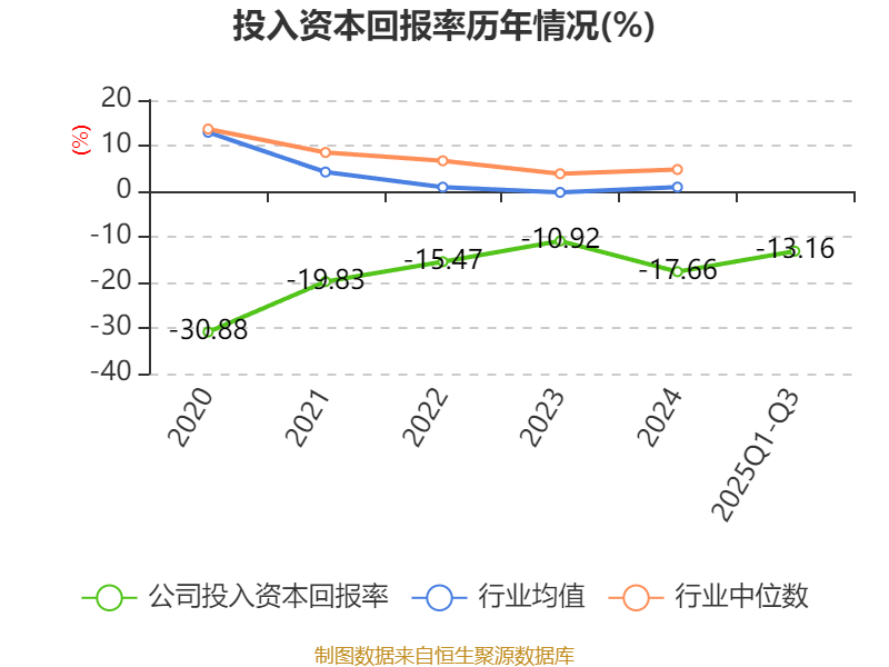 盈利能力方面, 2025年前三季度公司加权平均净资产收益率为-13.66%,同比下降6.76个百分点。公司2025年前三季度投入资本回报率为-13.16%,较上年同期下降4.83个百分点。