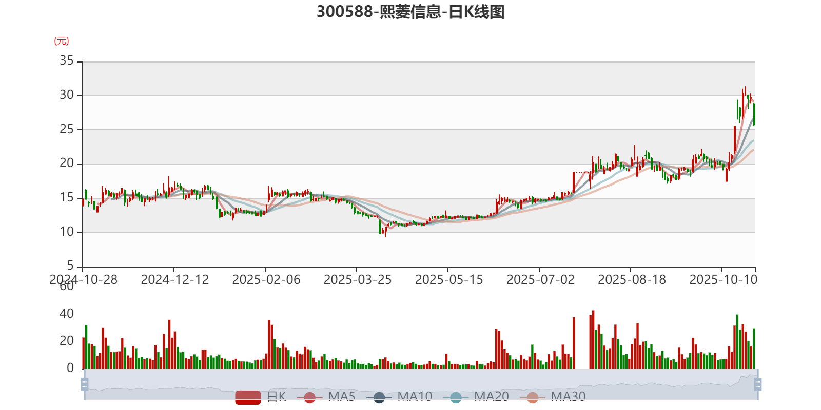 中证智能财讯熙菱信息(300588)10月28日披露2025年第三季度报告。前三季度公司实现营业总收入1.33亿元,同比增长16.85%;归母净利润亏损4036.57万元,上年同期亏损2552.84万元;扣非净利润亏损4905.03万元,上年同期亏损3584.82万元;经营活动产生的现金流量净额为3785.86万元,上年同期为-4881.78万元;报告期内,熙菱信息基本每股收益为-0.2124元,加权平均净资产收益率为-13.66%。