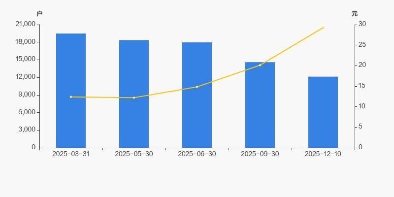 自2025年3月31日以来,公司股东户数连续4期下降,截至目前减幅为37.74%。2025年3月31日至2025年12月10日区间股价上涨136.08%。