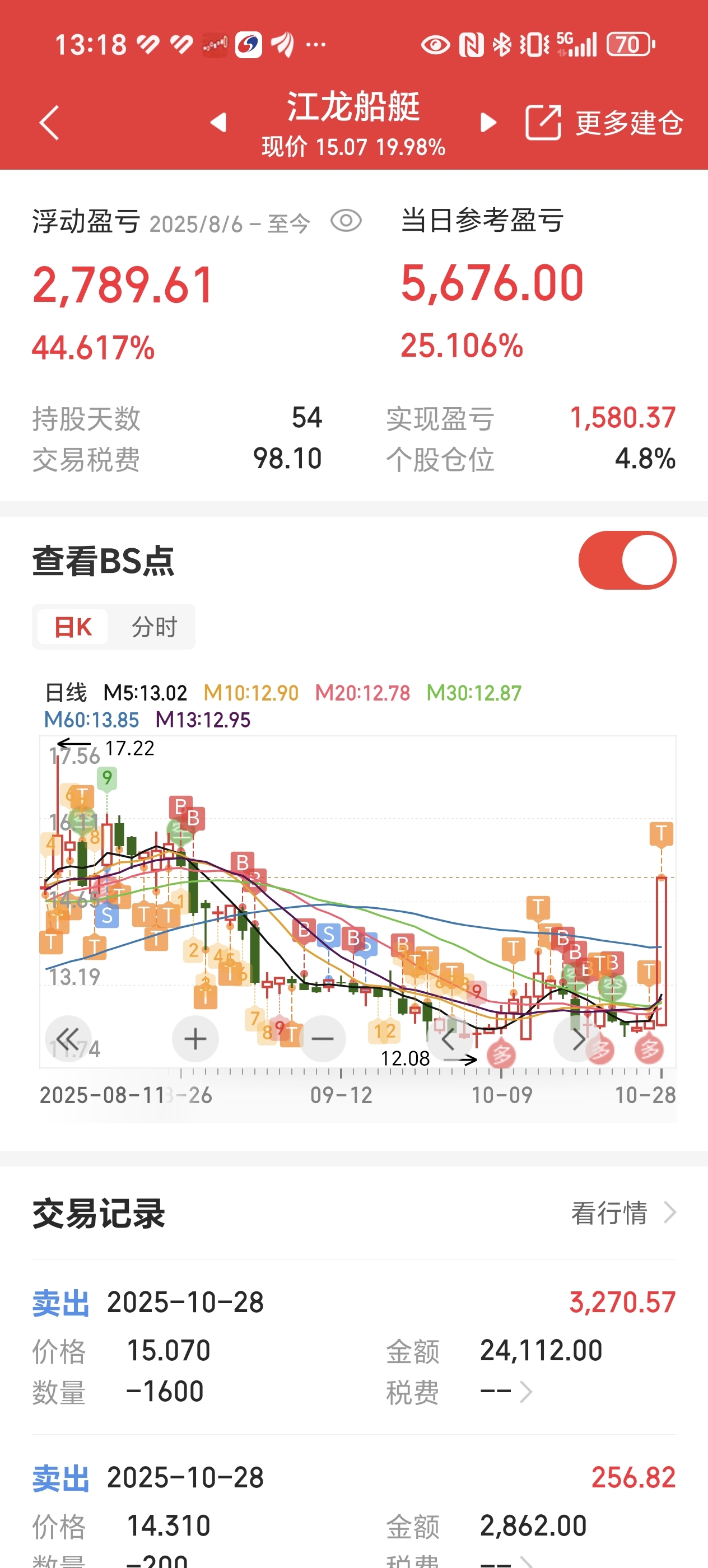 $江龙船艇(SZ300589)$ 感谢老江,让我第一次吃饭了20米,板上跑了