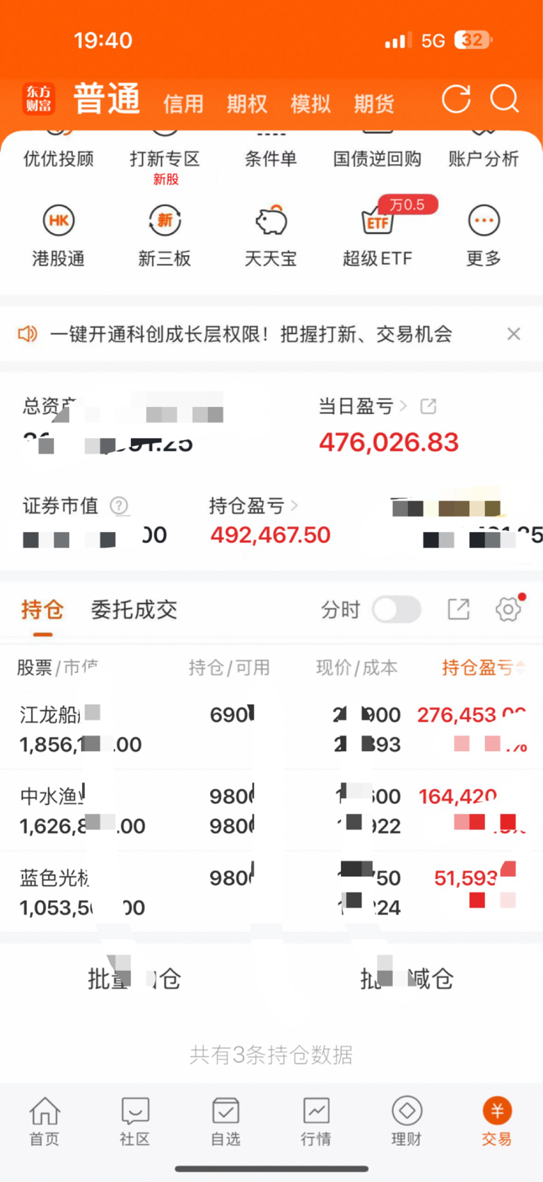目前持仓情况:蓝色光标、中水渔业、江龙船艇