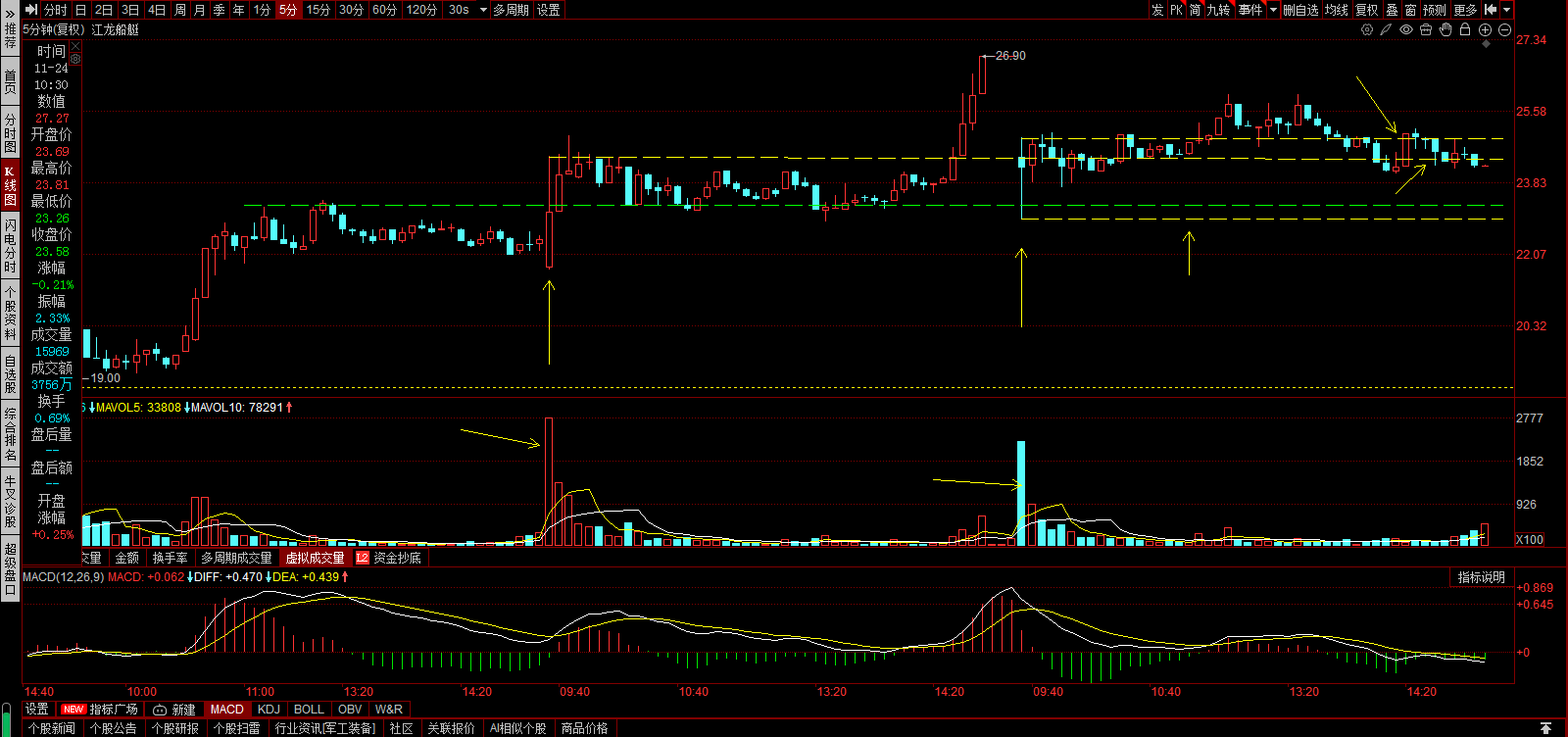 分时上,重要的成交量柱,顶部还在纠缠,还有戏。