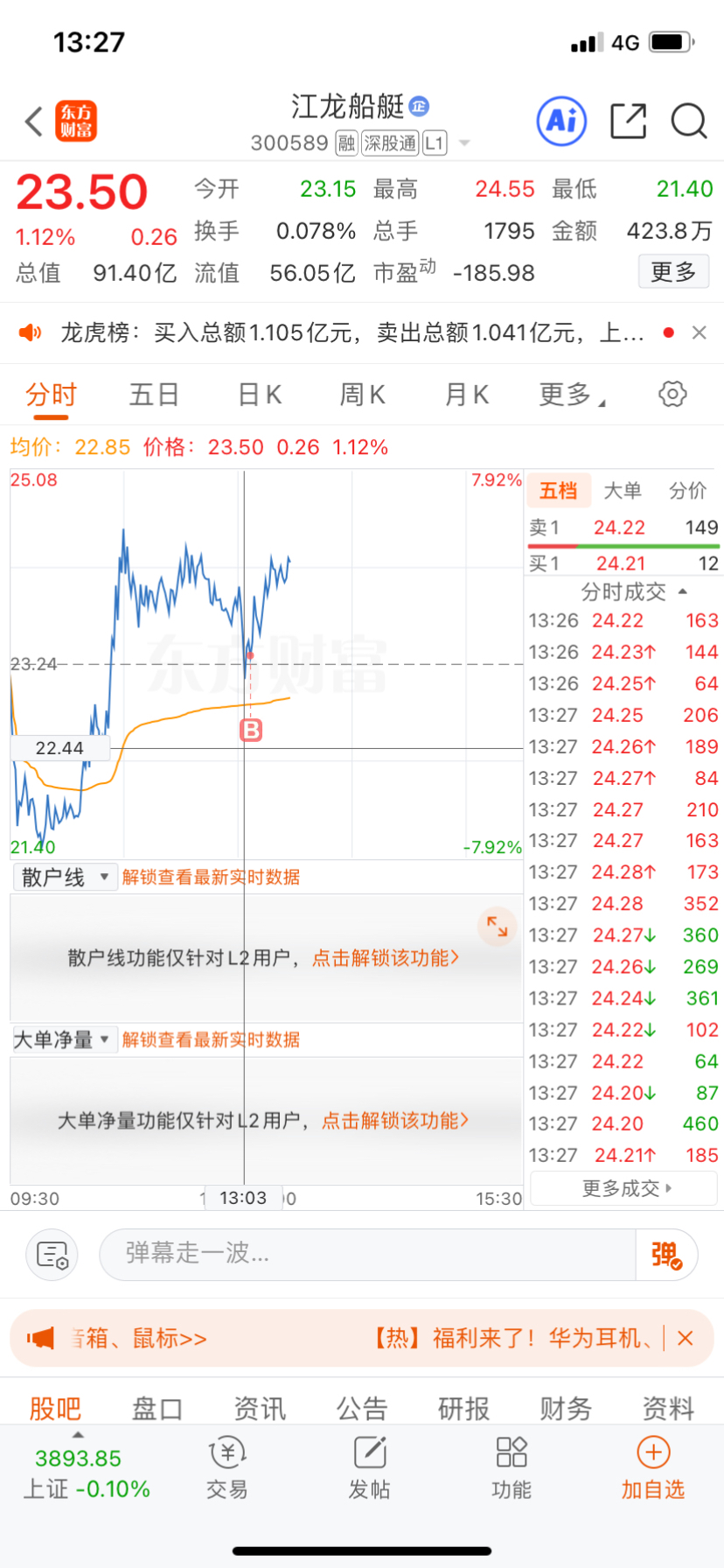午盘选择低吸介入$江龙船艇(SZ300589)$ #强势机会# #实盘记录# #投资干货# #投资随笔#