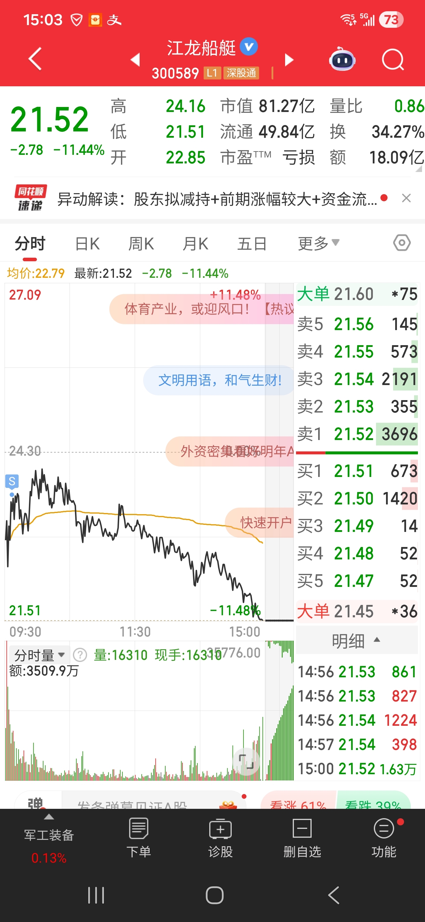 $江龙船艇(SZ300589)$ 还好早上跑了,这也太吓人了吧!