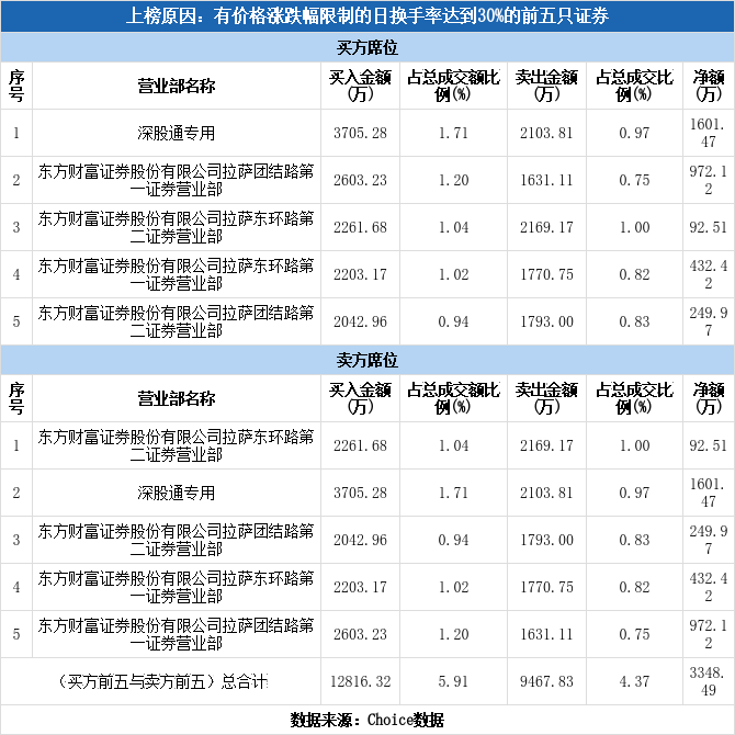 深交所2025年12月9日交易公开信息显示,江龙船艇因属于有价格涨跌幅限制的日换手率达到30%的前五只证券而登上龙虎榜。江龙船艇当日报收23.20元,涨跌幅为3.43%,换手率39.56%,振幅14.27%,成交额21.68亿元。